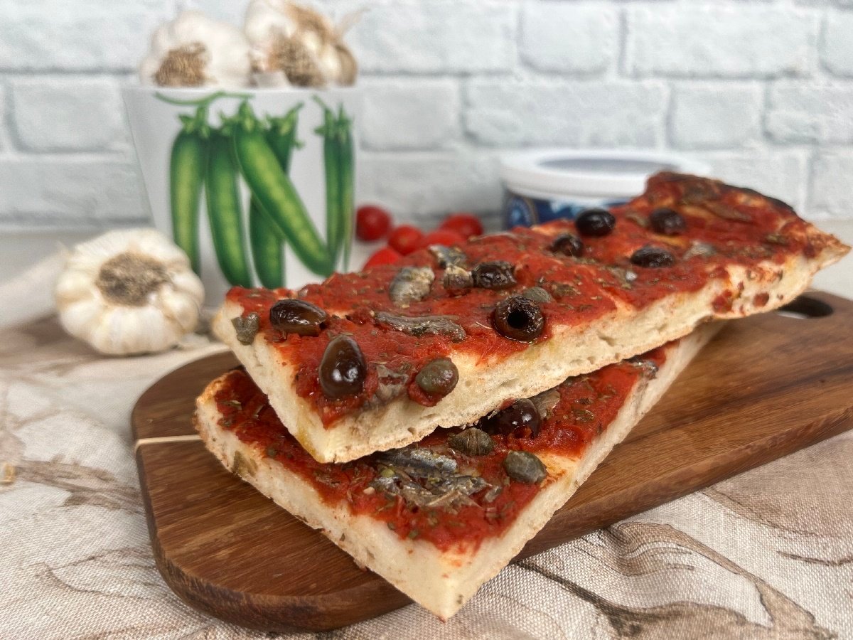 Se ami le focacce dal sapore deciso, la Sardenaira ligure ti conquisterà al primo morso. È una vera esplosione di gusto: l’impasto soffice incontra la passata di pomodoro e si arricchisce con acciughe, capperi e olive taggiasche, per un risultato che profuma di mare e di tradizione.