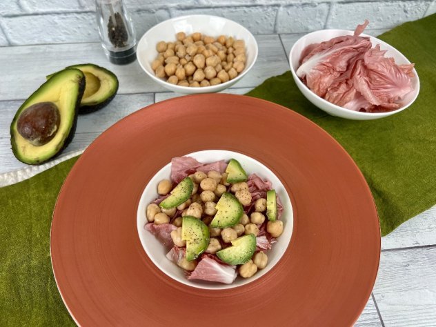 Version with gluten of Buckwheat Salad with Chicken Ragout and Grilled Peaches