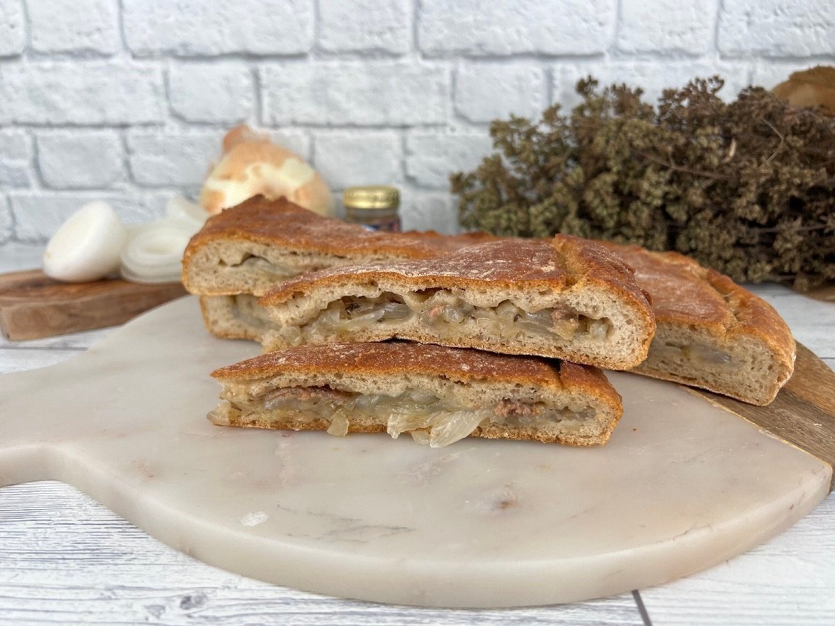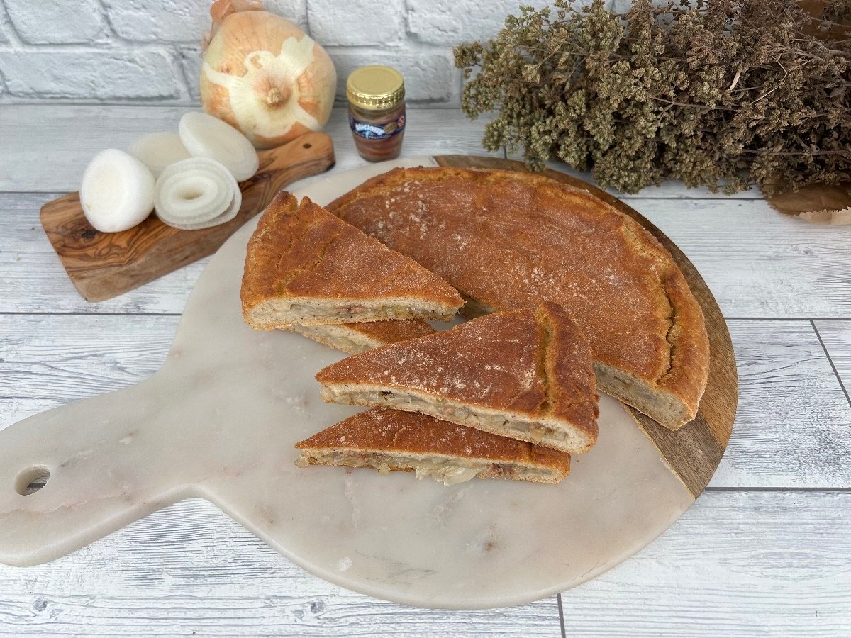 La versione con glutine della Schiaccia di cipolle e alici