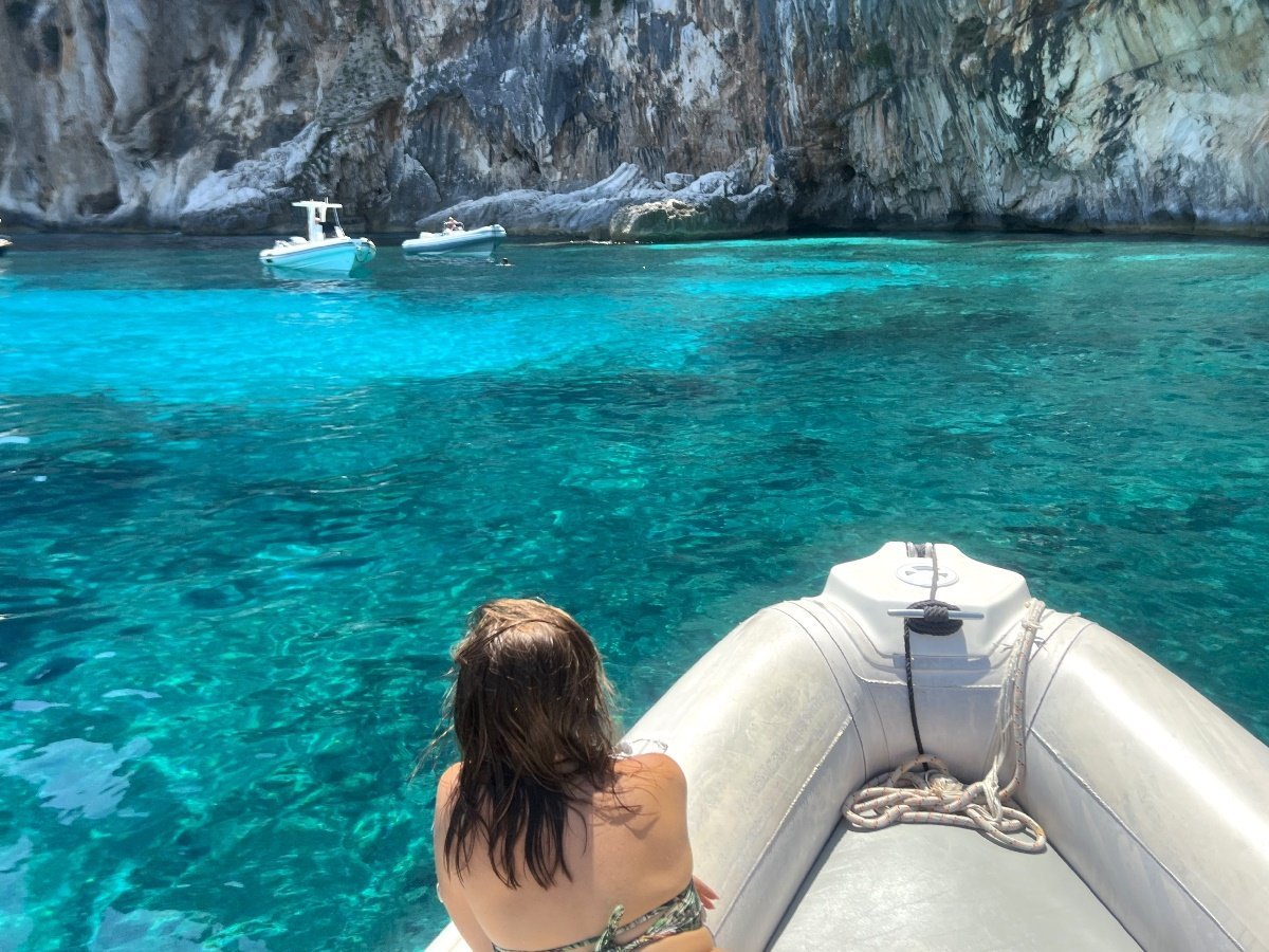 E proprio in quel turchese bisogna tuffarsi per vivere un’esperienza di simbiosi con le acque cristalline delle cale del Golfo. L’escursione in gommone con il Noleggio Locazione Bellavista guidati dallo skipper Pietro (per prenotare un tour, contatta Luigi: 379-1450459) è stata la scelta perfetta: un viaggio tra grotte misteriose, leggende affascinanti e racconti di antichi commerci.