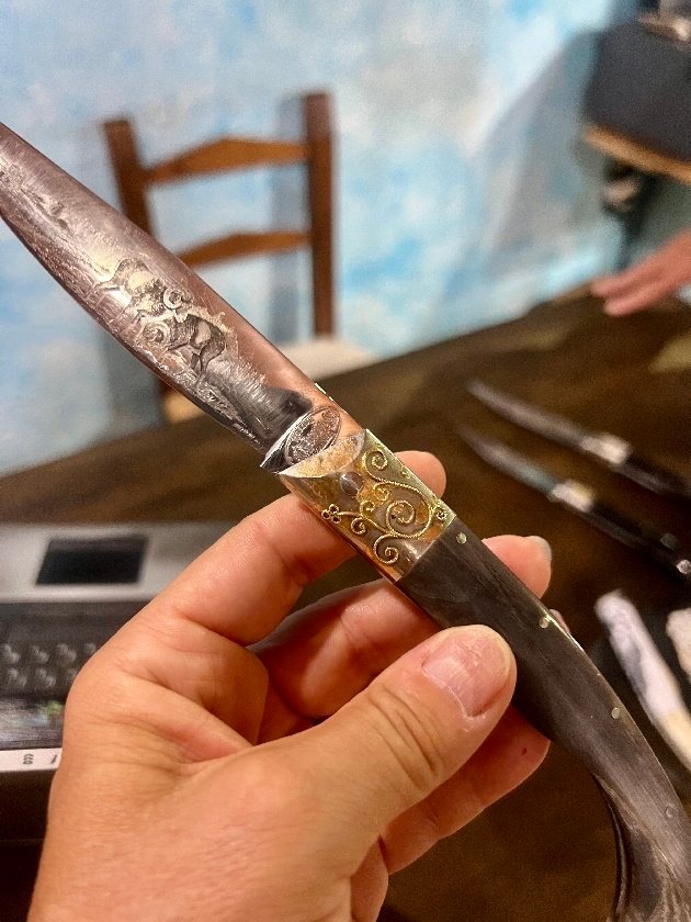 A Dorgali i coltelli di Ivan Pira sono gioielli veri, come avverte il nome della coltelleria: Coltelligioiello. Sì, perché la lama è lucidata a specchio, i manici sono intagliati dalle corna di mufloni e montoni e l’arte della filigrana sarda di cui Ivan è maestro entra delicata ed aggraziata a trasformare l’inseparabile strumento dei pastori in un oggetto che ti incanta. Se non sapete cosa regalarmi in un’occasione importante, vi aiuto: un coltello (direi, un bel trinciante) fatto a mano, personalizzato, da portare sempre con me in corsi ed eventi!