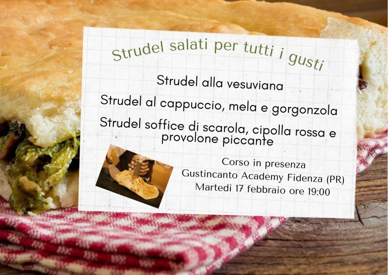 Impareremo a preparare strudel con diversi impasti e tecniche di chiusura, a bilanciare sapori e consistenze e a valorizzare ingredienti di stagione. Un percorso guidato passo passo per realizzare preparazioni perfette da servire come antipasti, piatti principali o per un buffet speciale.
